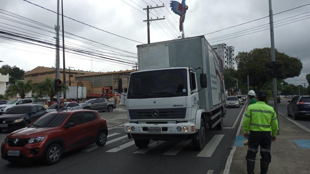 Prefeitura de Manaus fiscaliza caminhões na avenida Ephigênio Sales