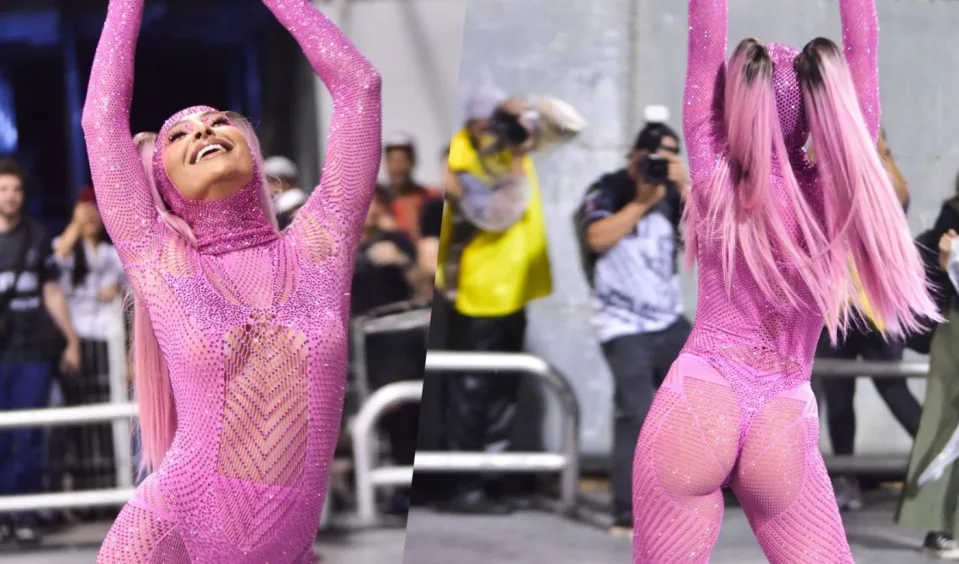 Sabrina Sato arrasa com look rosa transparente em pré-carnaval