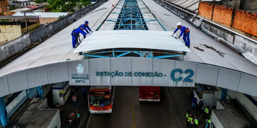 Prefeitura de Manaus segue com reforma do Terminal 2 com troca de telhas e pintura do local