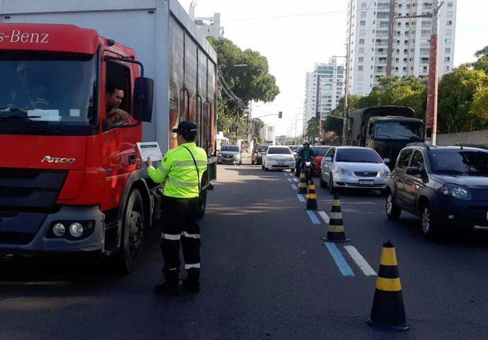 Prefeitura de Manaus fiscaliza tráfego de veículos pesados na avenida Mário Ypiranga Monteiro, na zona Centro-Sul