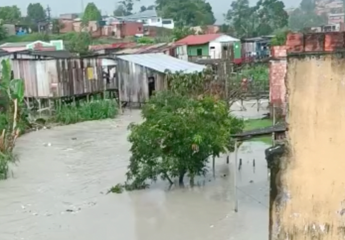 Áreas de igarapés de Manaus ficam transbordam após forte chuva