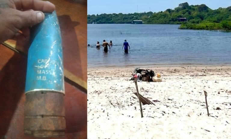 PERIGO: criança de 10 anos encontra bomba em praia do Amazonas; veja vídeo