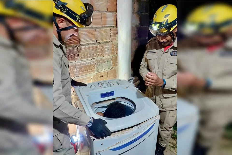 Brincadeira de criança: criança fica presa em máquina de lavar e bombeiros foram acionada