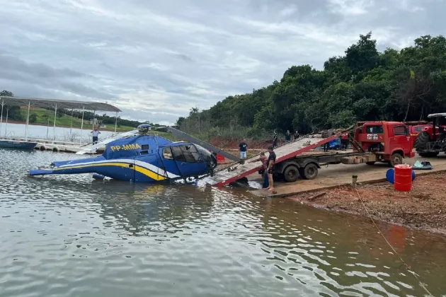 Helicóptero é retirado de lago em Capitólio (MG); veja vídeo