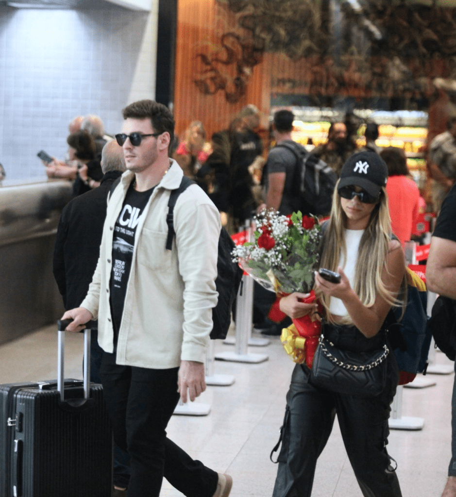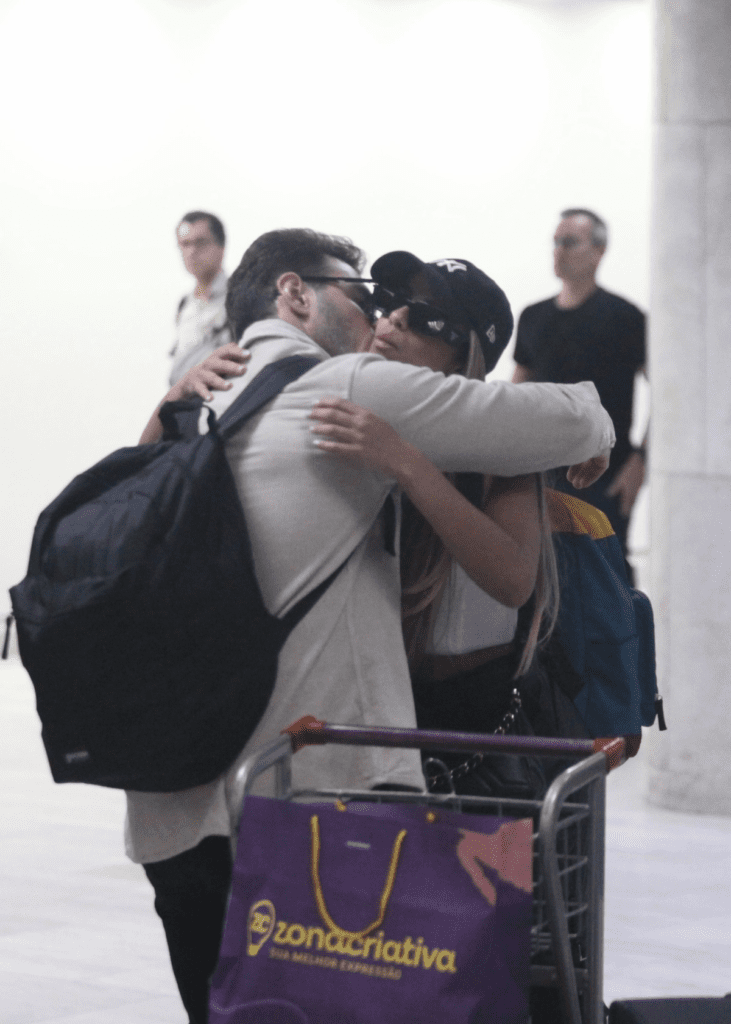 Parece que a paz foi selada entre Key Alves e Gustavo Benedetti. Os dois foram flagrados trocando carícias ao desembarcarem no aeroporto Santos Dumont, no Rio de Janeiro, nesta terça-feira (25).