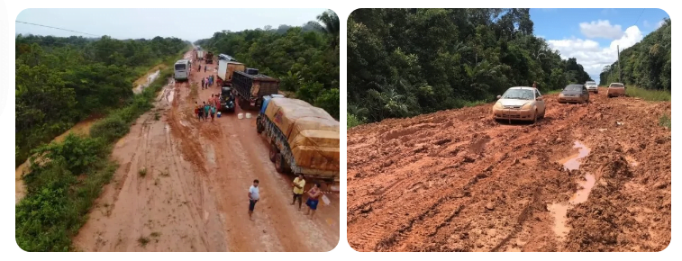 Diariamente, dezenas de motoristas de ônibus, caminhões e veículos particulares enfrentam a rodovia e seus atoleiros, alagações, desabamentos, e obras inacabadas que são registradas todos os dias nos grupos de WhatsApp da Associação dos Amigos e Defensores da BR-319.