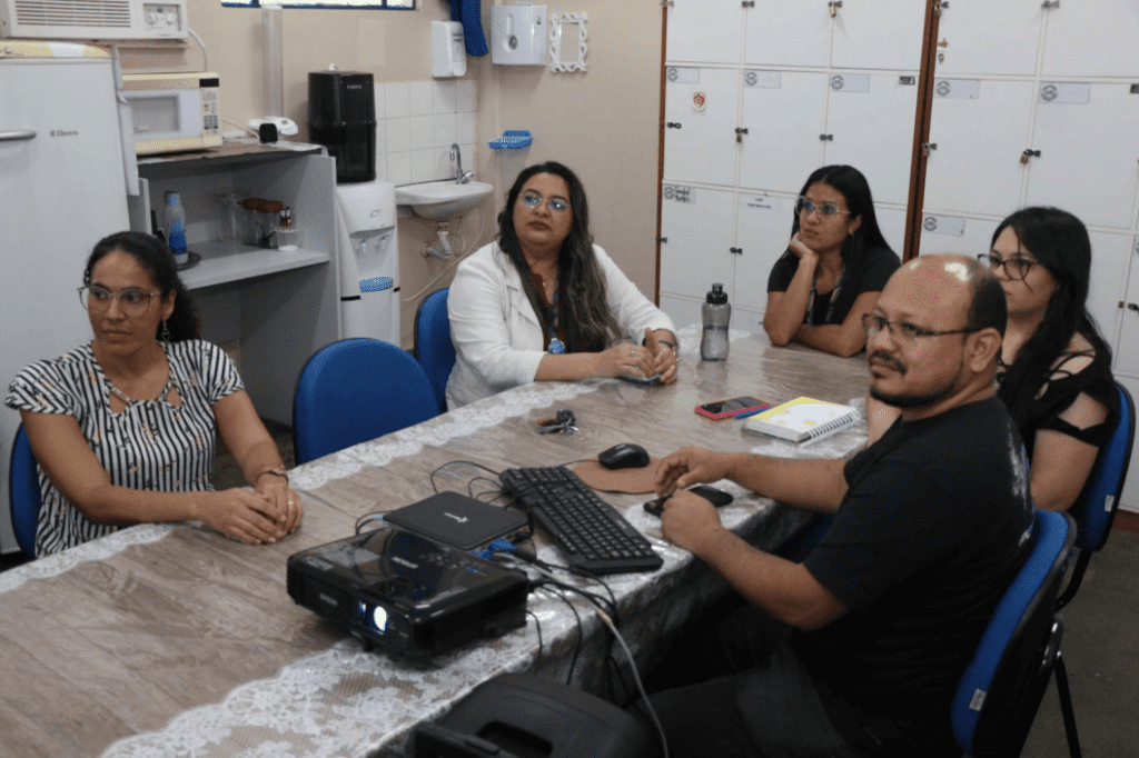 Na Escola Estadual Deputado Josué Neto, localizada no bairro Coroado, zona leste, a equipe gestora e pedagógica se reuniu para acompanhar a transmissão.