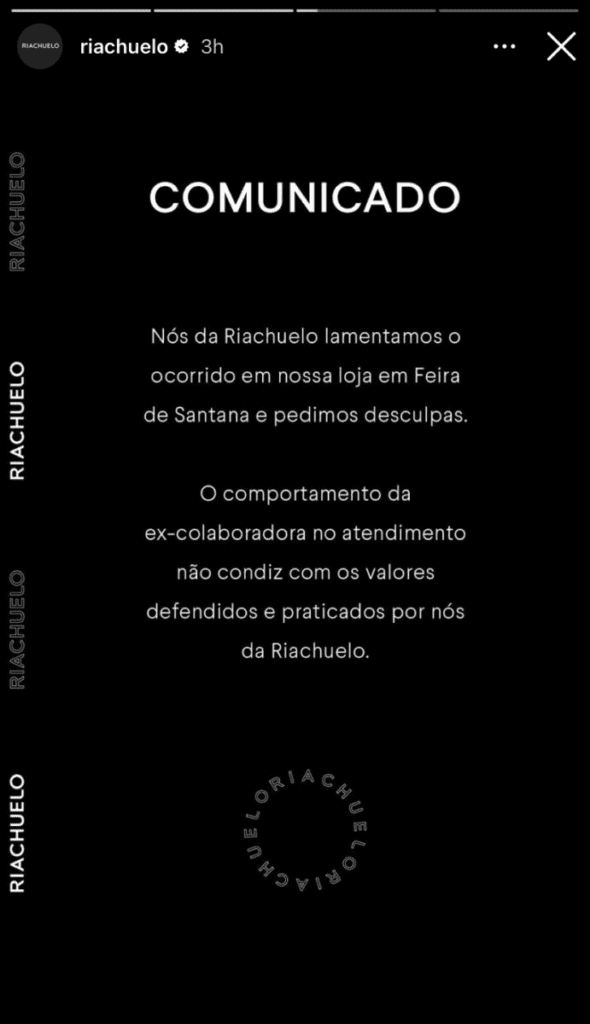 A Riachuelo emitiu um comunicado nas redes sociais, veja