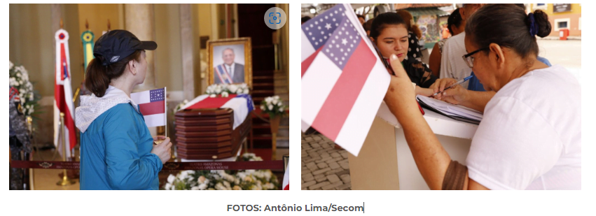 Eleitora de longa data de Amazonino, a aposentada Maria Terezinha, de 77 anos, compareceu ao funeral com um álbum de fotos e adereços símbolos do ex-governador. “Eu tenho uma gratidão muito grande. Para mim era um homem do bem e vai continuar na memória das pessoas que gostam dele. Eu acompanho ele desde a primeira vez que ele foi prefeito. Eu vim hoje aqui e vou voltar mais tarde”, afirmou Maria.