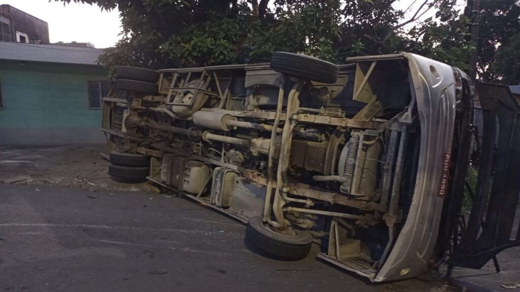 Nesta sexta-feira (17), um ônibus tombou na rua H, bairro Nova Cidade, zona Norte da capital amazonense.