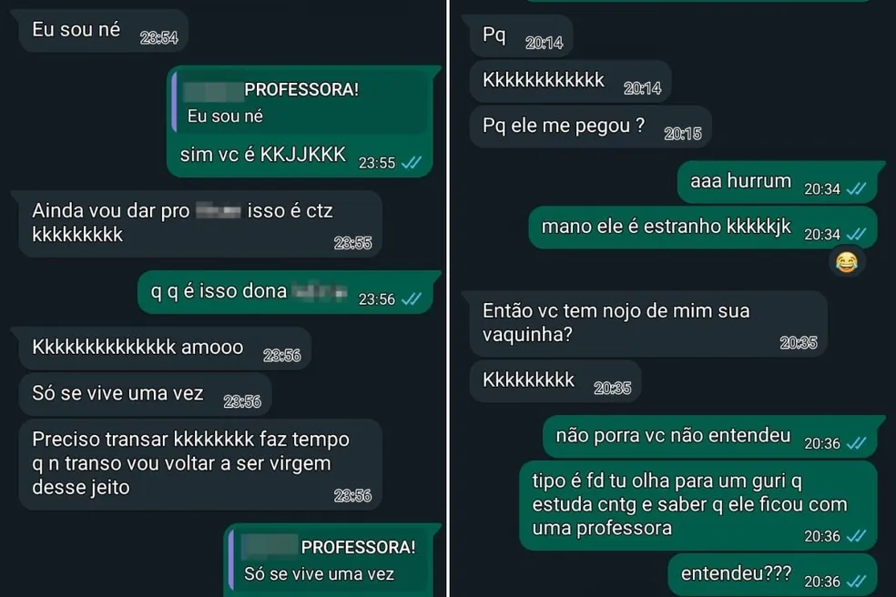 Ainda na conversa com a aluna, a docente diz que queria transar com o estudante alegando que “só se vive uma vez”. O caso veio à tona após a aluna mostrara todas as mensagens para a mãe que foi até a escola e denunciou a professora.