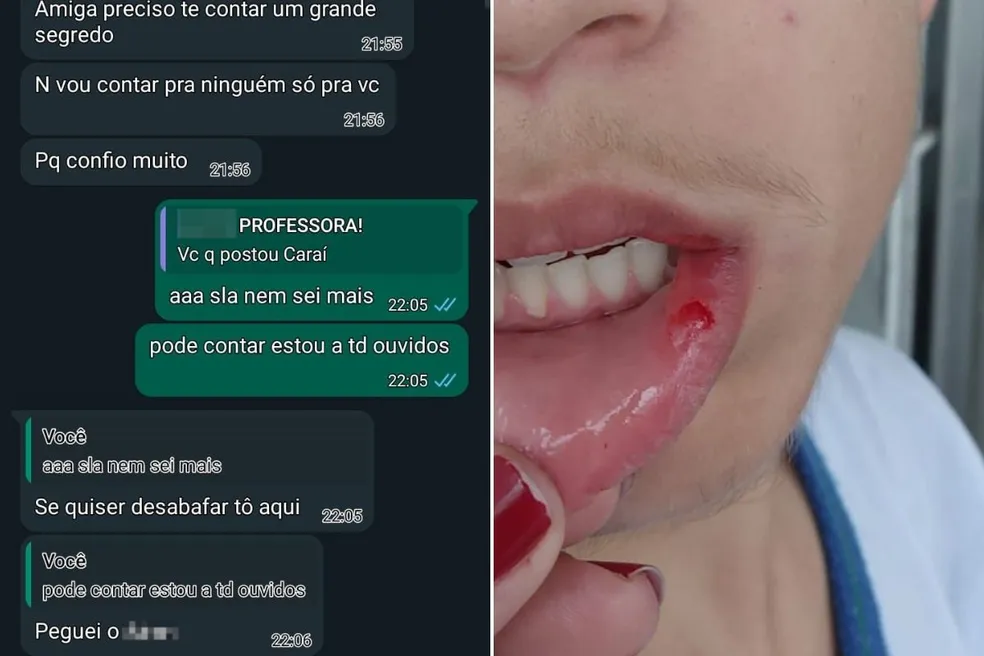 A mulher revelou que quando a mãe da aluna fez a denúncia do beijo da professora, sete estudantes cercaram o filho dela e a melhor amiga dele, entre os agressores estava justamente o adolescente que teria beijado a docente.